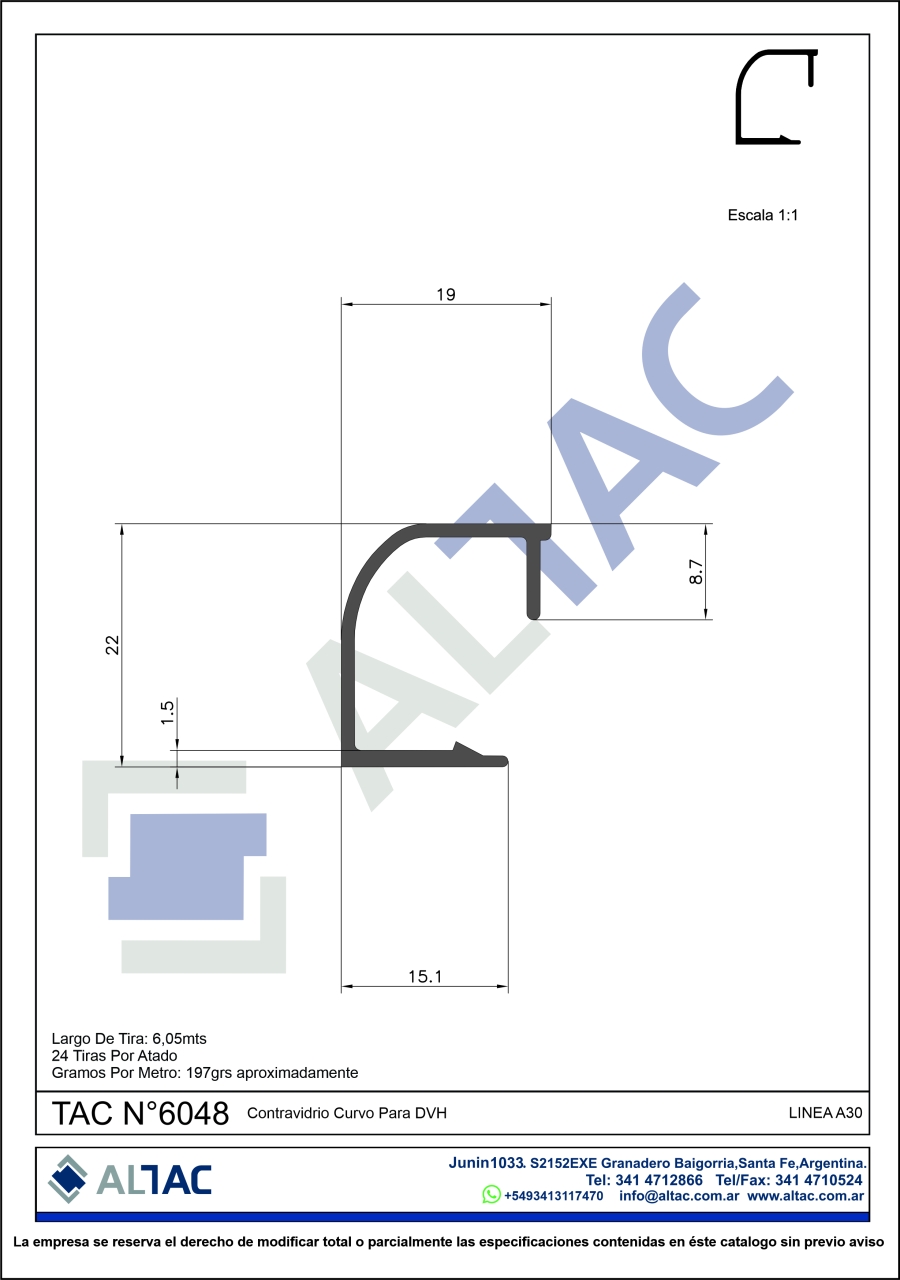Largo de la tira: 6,05mts