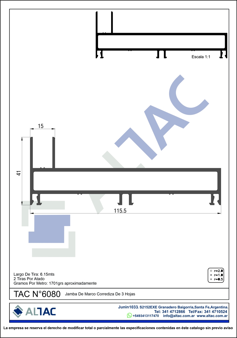 Gramos por metro: 1703,70grs aprox