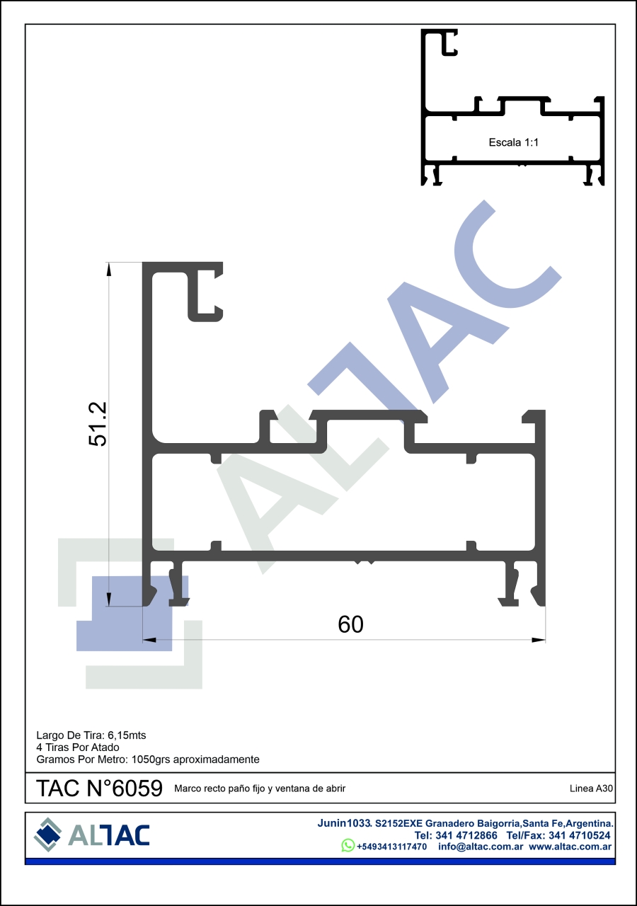 Largo de la tira: 6,05mts