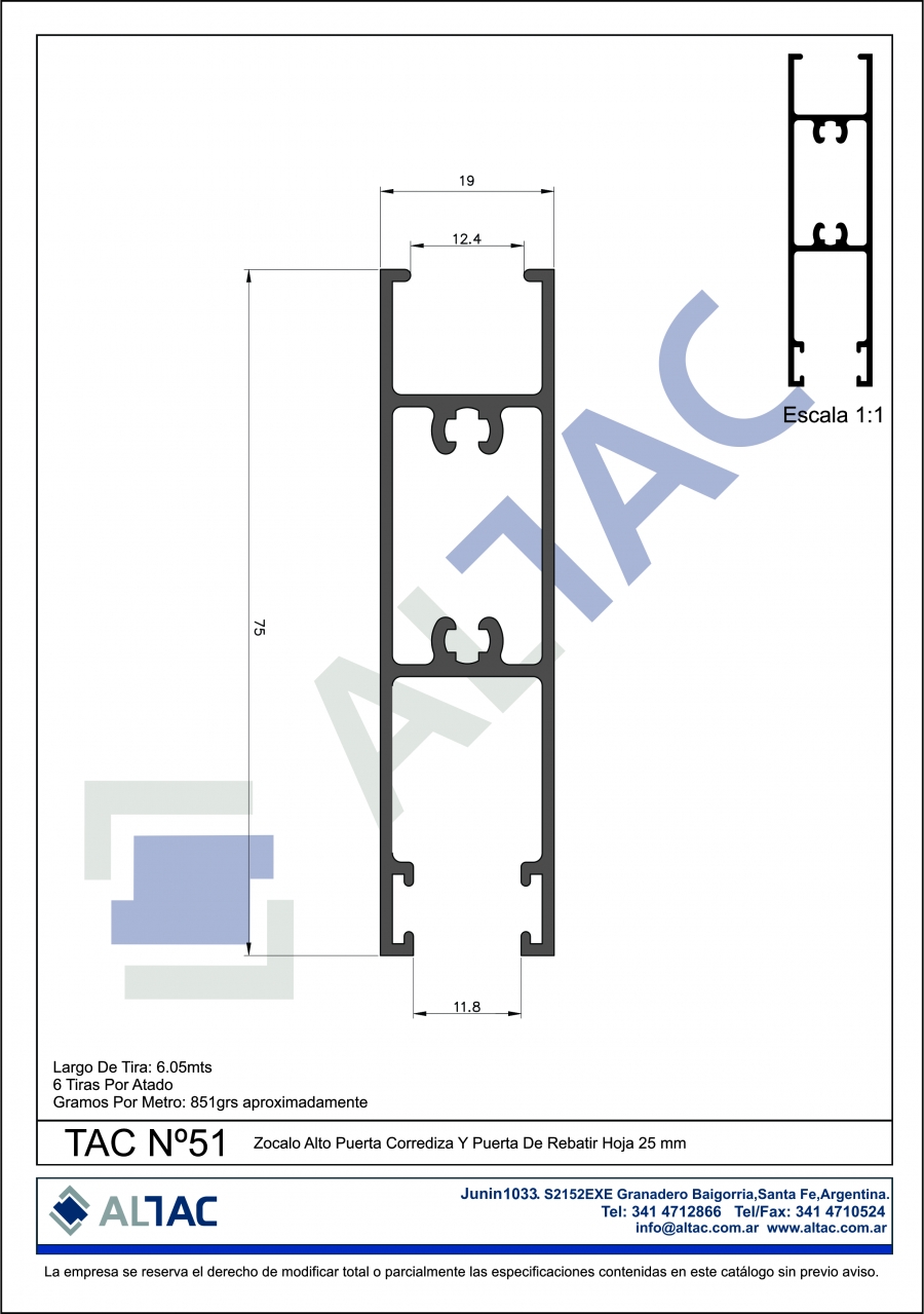 Zocalo Alto Puerta Corrediza Y Puerta De Rebatir Hoja 25 mm