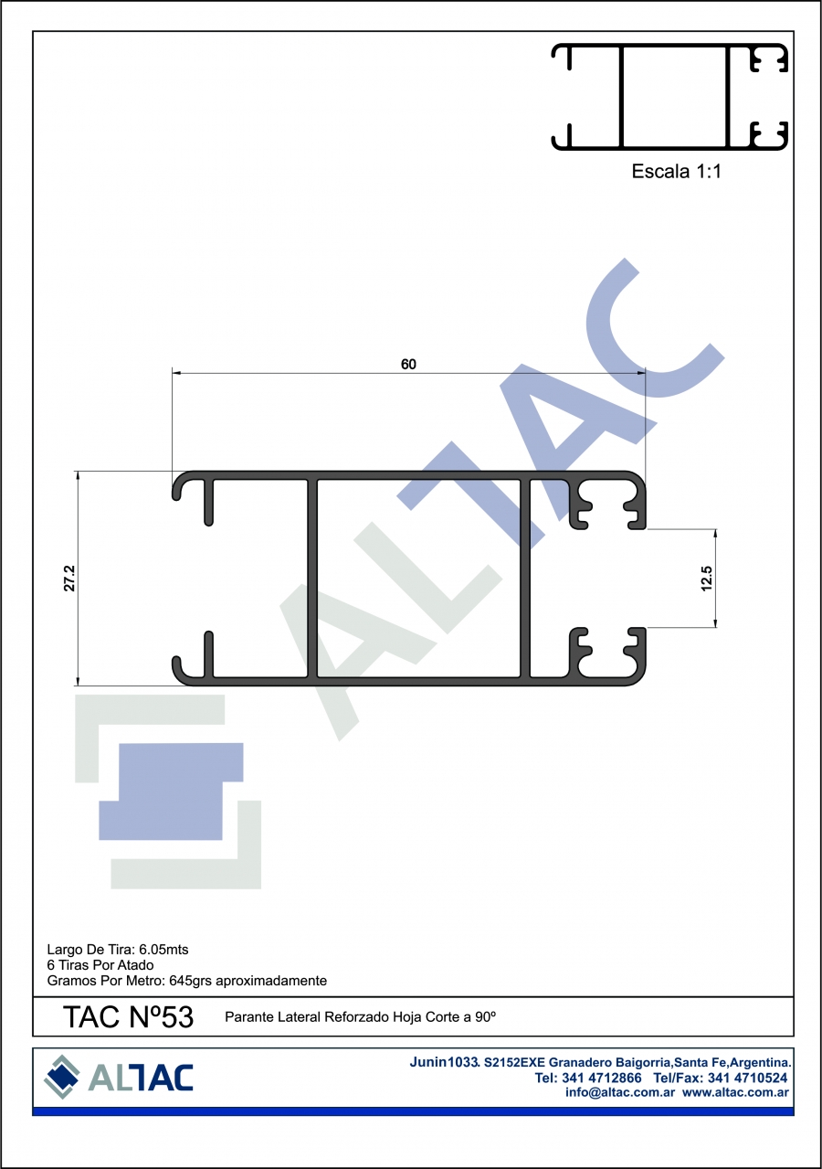 Largo de la tira: 6,05mts