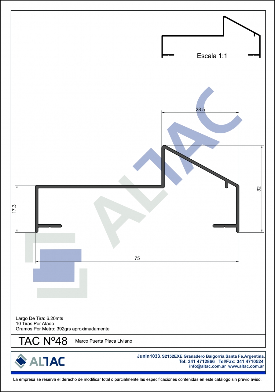 Gramos por metro: 392,04grs Aprox