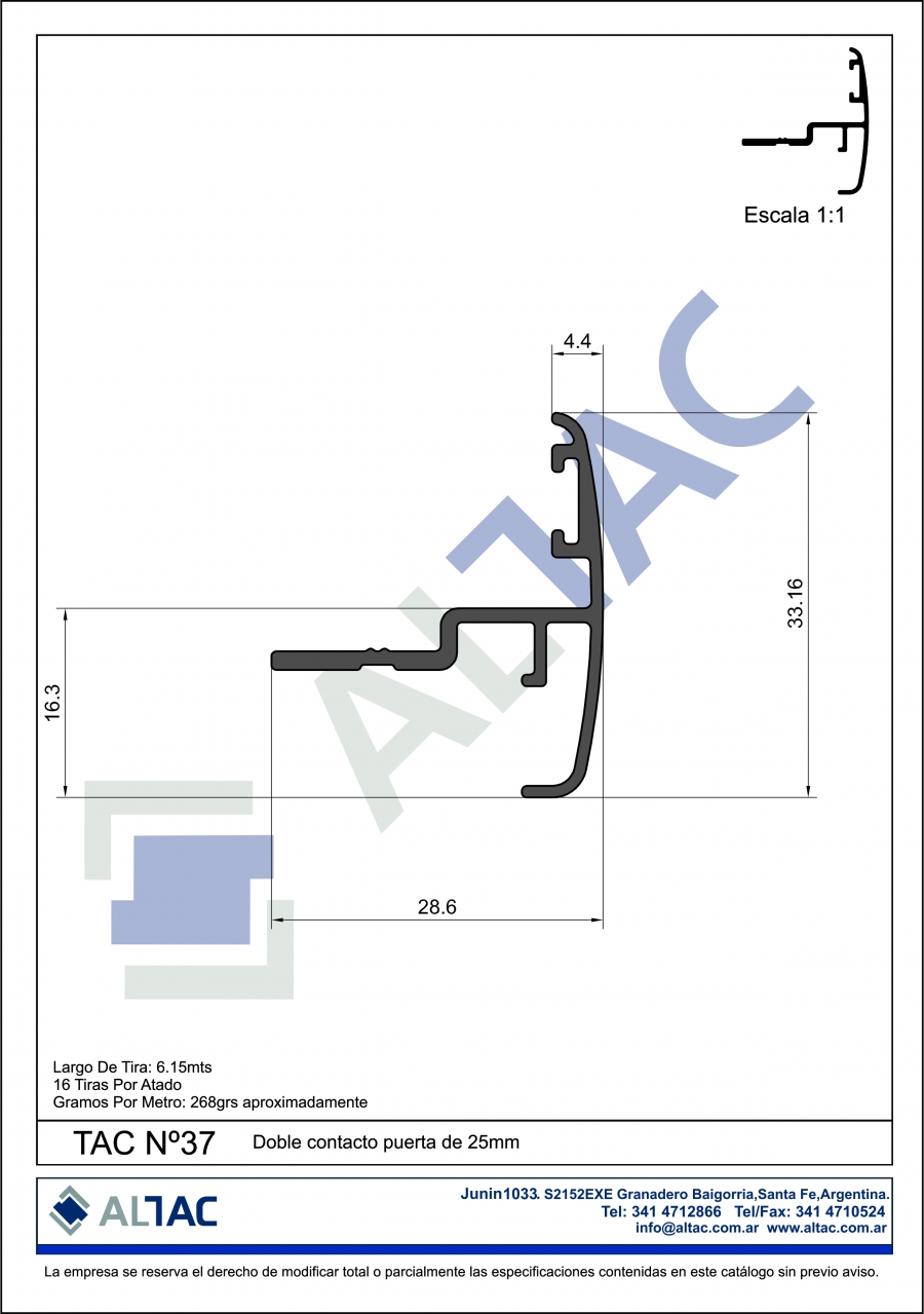 Largo de la tira: 6,15mts