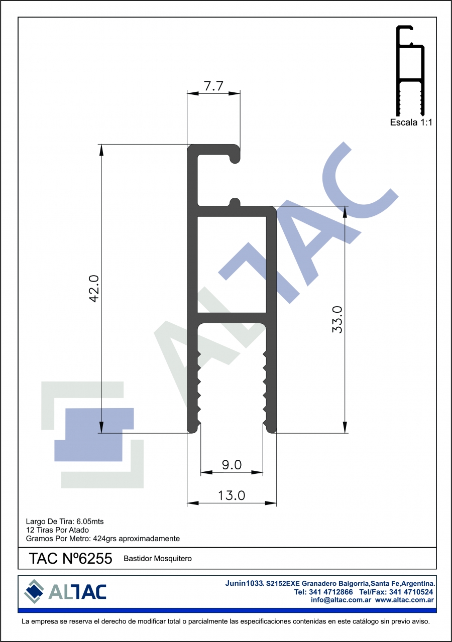 Largo de la tira: 6,05mts