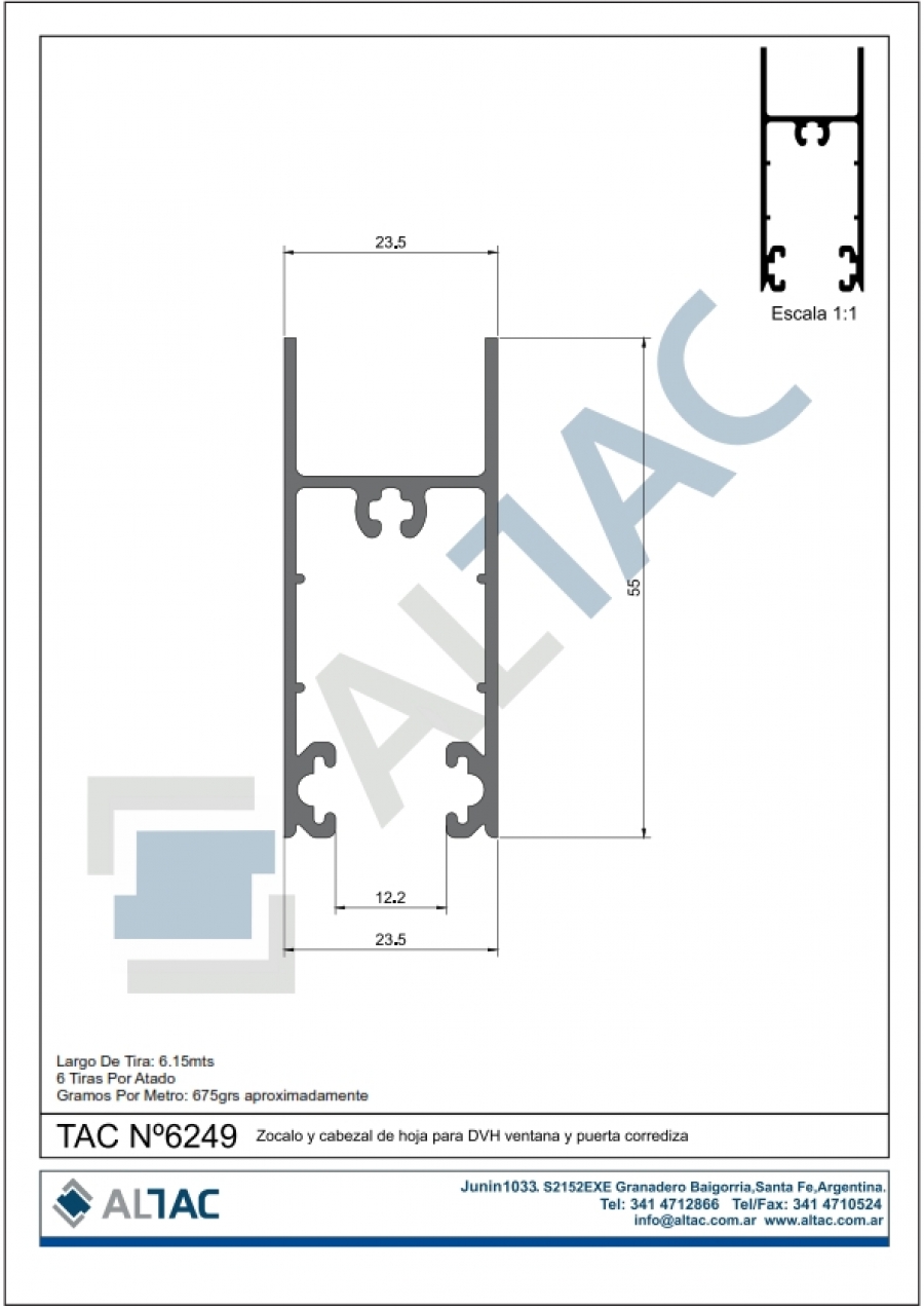 Zocalo y cabezal de hoja para DVH ventana y puerta corrediza