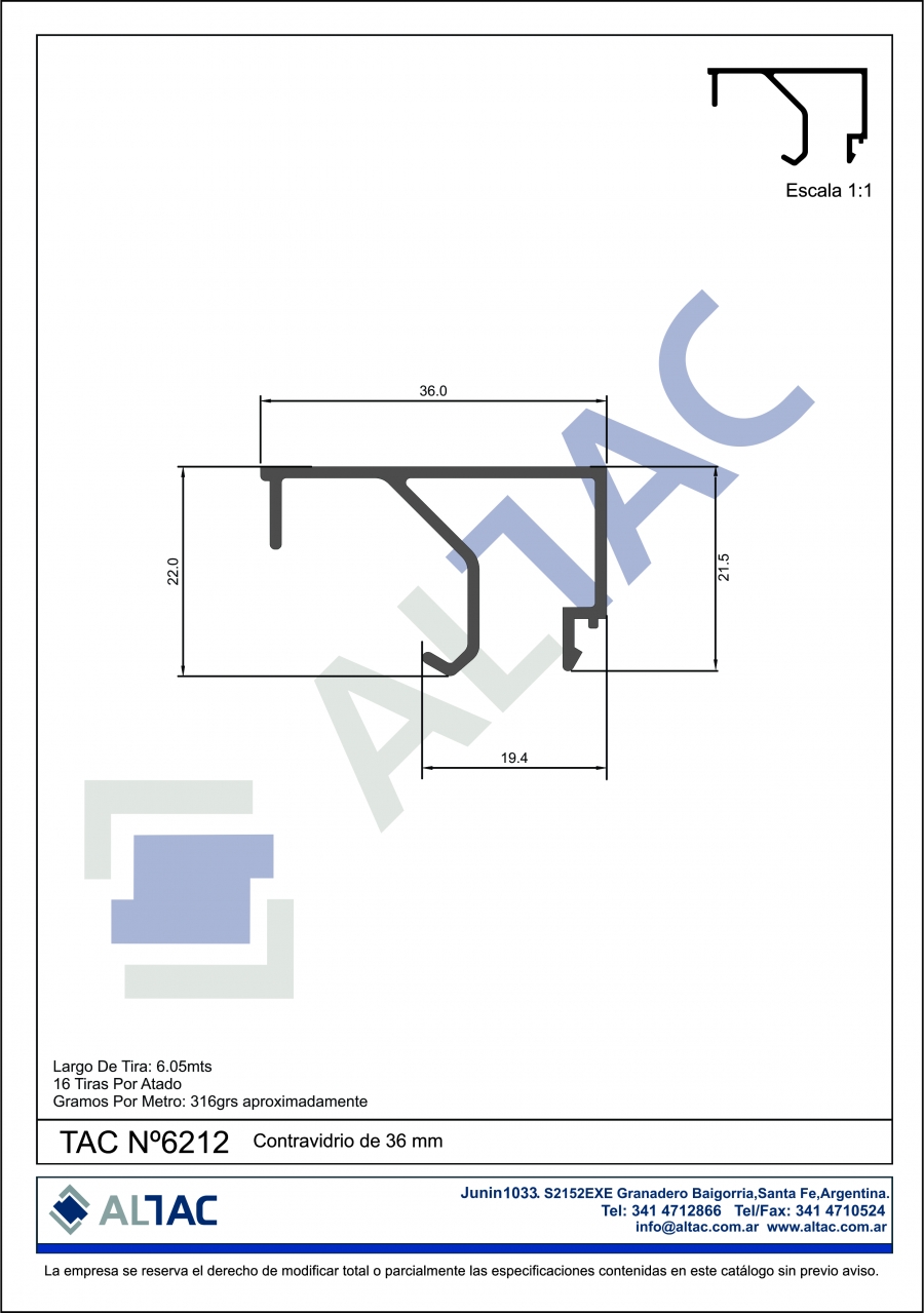 Largo de la tira: 6,05mts