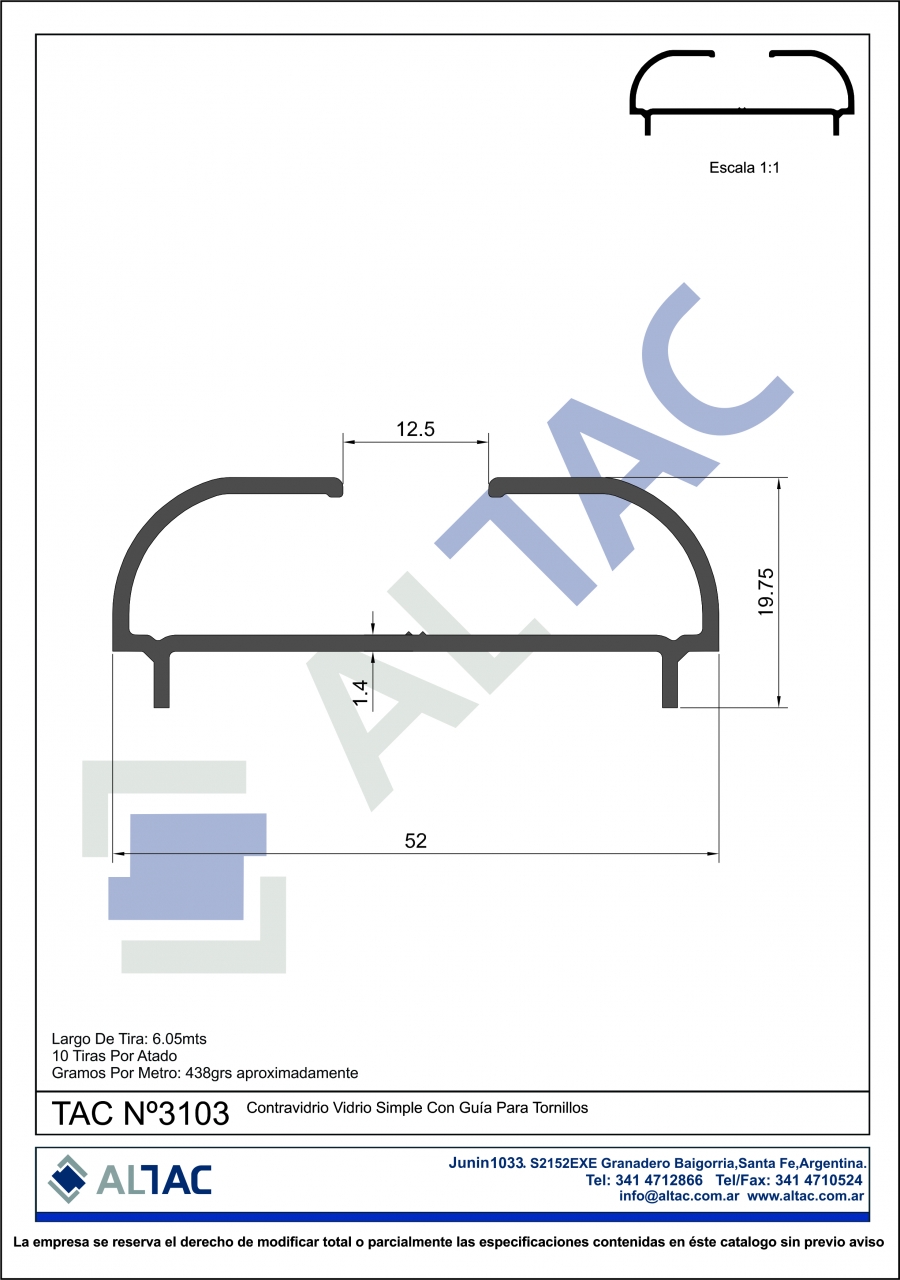 Largo de la tira: 6,05mts