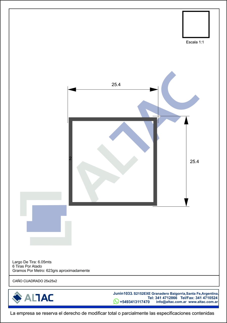 Caño Cuadrado 25.4x25.4x2