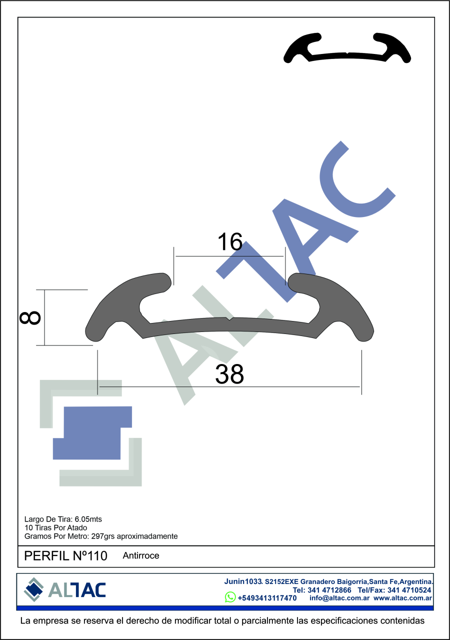 Largo de la tira: 6,05mts