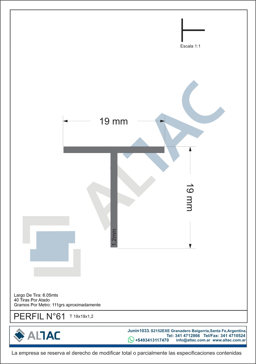 PERFIL N°61 T19x19x1.2