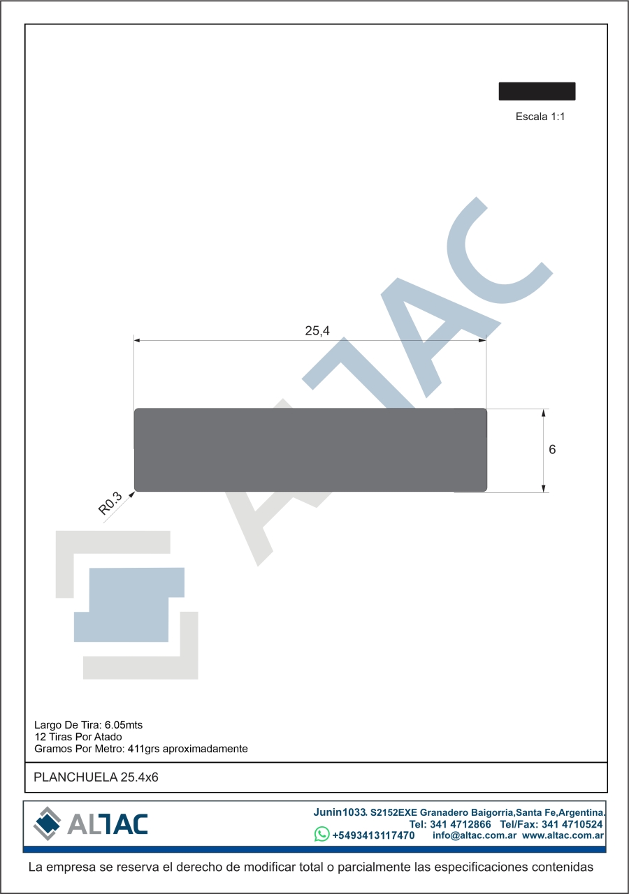 Planchuela 25,4x6mm